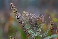 In de ochtenddauw zien spinnenwebben er mooi uit.