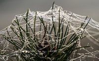 Op een herfstige dag in het bos, spinnenweb nog nat van de dauwdruppels. Wanneer het herfst is weet je dat de spinnen actief worden en dan met deze ochtenddauw worden alle draden goed zichtbaar.