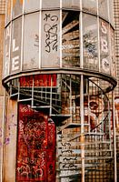 Spiraaltrap & rode deur — urban graffiti scène van Broodrooster Studio – Creatieve Fotografie