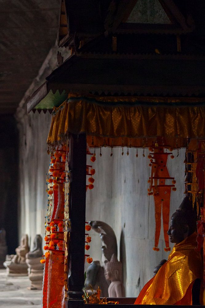 Spirituele scene in een tempel van Angkor Wat te Cambodia.