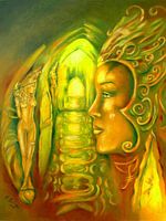 Spiritueel olieverfschilderij, 100% handgeschilderd en handgesigneerd! Inspiratie was een bezoek aan de spirituele gemeenschap Damanhur - Tempel van de Mensheid - in Boven-Italië.