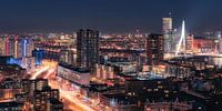 Rotterdam is vanuit vele hoeken veel te fotograferen en is ook al vaak gedaan. Soms is het extra mooi als je de kans krijgt om de stad eens vanuit een ander en niet gebruikelijk oogpunt kunt fotograferen. Zo ook bij deze foto van de Erasmusbrug en de binnenstad van Rotterdam tijdens een sfeervol en druk blauw uurtje vanuit een ander perspectief.