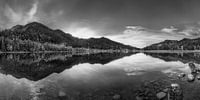 Zonsopgang bij de Spitzingsee in de gouden herfst in Beieren.