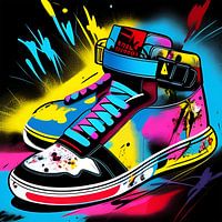 Dit levendige kunstwerk is een explosie van popcultuur, mode en street art, waarbij sneakers de hoofdrol spelen in een kleurrijk spektakel dat de zintuigen prikkelt. Met een mix van felle kleuren en gewaagde patronen, brengt het kunstwerk een eerbetoon aan de dynamiek van popart en de gedurfde expressie van de moderne…