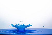 Splash in blauw en wit. De ontstane kelk is blauw, met daarboven een witte druppel, vlak voor de volgende splash.