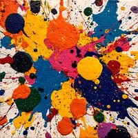 Een abstract kunstwerk met een compositie die bestaat uit opvallende, chaotische spetters en strepen, wat een dynamisch gevoel van beweging en energie creëert.