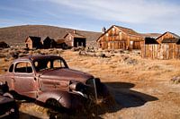 Autowrak van een Chevrolet coupé uit 1937 bij het spookstadje Bodie, Californië, Verenigde Staten van Amerika, USA | verlaten Chevrolet coupé uit 1937 bij het spookstadje Bodie, Californië, Verenigde Staten van Amerika, USA