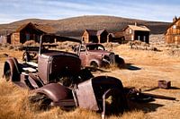 Autowrakken bij het spookstadje Bodie, Californië, Verenigde Staten van Amerika, USA | verlaten auto's bij het spookstadje Bodie, Californië, Verenigde Staten van Amerika, USA