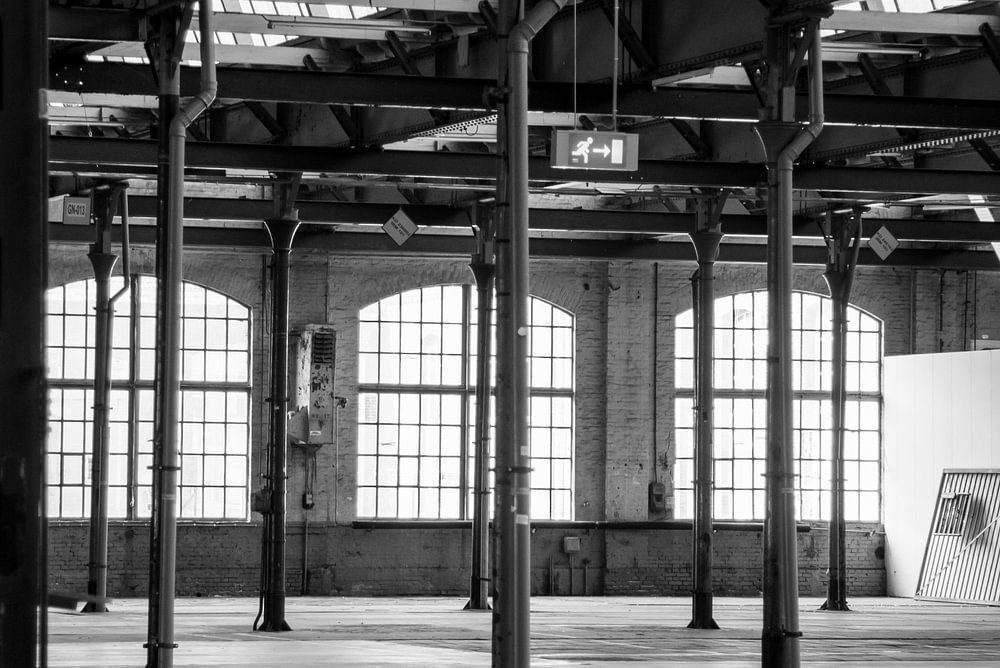 Spoorzone Tilburg hal zwart wit