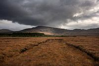 Sporen van machinale turfwinning in een veengebied bij Ballycroy, county Mayo in Ierland. Inmiddels is dit stukje veengebied, dat zich vlakbij National Park Ballycroy bevindt, beschermd en wordt er geen turf meer gestoken.
