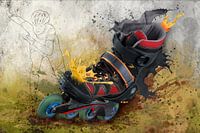 Mijn sport als kunstwerk - een esthetische compositie van verfijnde studiofotografie, levendige potloodtekeningen en creatieve schilderkunst. Kleurrijke dynamische spatten maken je nieuwsgierig en geven het kunstwerk een surrealistisch tintje.