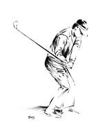 Illustratie van een golfspeler in volle actie. (nr 2 uit een reeks van 4) - Zwarte acrylverf op papier.