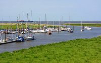 De jachthaven van Otterndorf ligt in het riviertje de Medem, dat hier uitmondt in de Elbe. Nedersaksen, Cuxland, Duitsland. Zomer 2018.