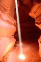 De beste tijd om een tour te boeken in de Upper Antelope Canyon bij de stad Page in Arizona, VS, is rond het middaguur. Dit is het enige tijdstip waarop je gegarandeerd getuige kunt zijn van deze spot op de canyonbodem. Het is ook het tijdstip dat het populairst is.
