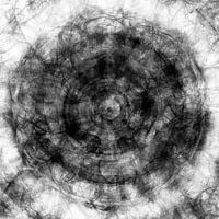 Abstract digitaal schilderij met gedurfde zwarte en witte lijnen, waardoor een ingewikkeld web van vormen en patronen ontstaat. Een boeiend kunstwerk dat de kijker naar binnen trekt.