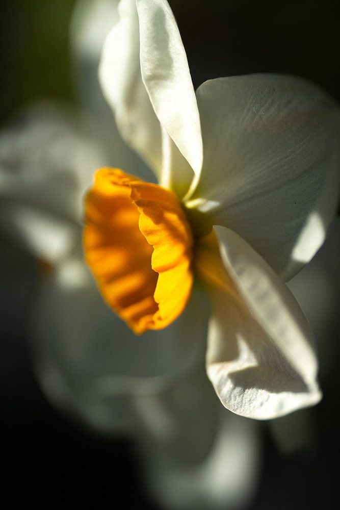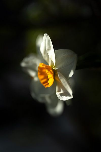 Deze macro-opname legt de narcis vast op een manier die doet denken aan de Clair-obscur techniek van de oude meesters. Het zachte, natuurlijke licht strijkt langs de fragiele witte bloembladeren, waardoor elke ader en textuur zichtbaar wordt. Het felle, bijna lichtgevende oranje hart vormt het stralende middelpunt van deze…