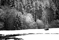 Deze foto werd gemaakt in een zijtak van het Albtal in het Zwarte woud in Duitsland. Door de sneeuw werden alle geluiden van het bos gedempt en er was geen wind.