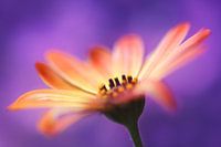 En close-up van een Spaanse margriet teen een paarse achtergrond.
