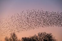 Koop dit vogel kunstwerk Spreeuwen in de lucht tijdens zonsondergang van Sjoerd van der Wal Fotografie op canvas, aluminium dibond, (ingelijste) fotoprint, behang en ArtFrame, op maat geprint in Fine-Art kwaliteit.