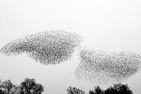 De vogels vliegen samen in een gecoördineerd patroon, veranderen van richting en snelheid als één enkele eenheid, en creëren wervelende en pulserende vormen in de lucht. Deze bewegingen zouden voor de vogels een manier zijn om roofdieren te ontwijken en bij elkaar te blijven in de troep, en de gesynchroniseerde patronen creëren een betoverend visueel schouwspel.