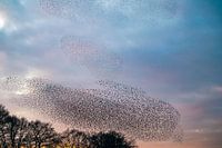 Koop dit vogel kunstwerk Spreeuwen tijdens zonsondergang aan het eind van de dag van Sjoerd van der Wal Fotografie op canvas, aluminium dibond, (ingelijste) fotoprint, behang en ArtFrame, op maat geprint in Fine-Art kwaliteit.