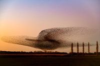 Koop dit vogel kunstwerk Spreeuwen tijdens zonsondergang aan het einde van een winterdag van Sjoerd van der Wal Fotografie op canvas, aluminium dibond, (ingelijste) fotoprint, behang en ArtFrame, op maat geprint in Fine-Art kwaliteit.