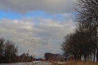 Sierlijk bewegen de Spreeuwen zich eensgezind door de lucht terwijl ze een volgende verzamelboom uitzoeken. Ondertussen een mooie voorstelling gevend aan de toeschouwer in de Biesbosch.