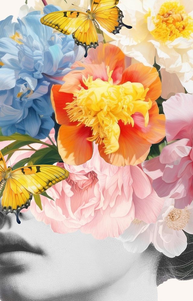 Een portret van een vrouw, met haar hoofd vol in de lente.