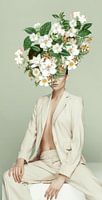 Een statig, modieus, botanisch en modern portret van een vrouw.
