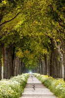 eindeloos lang bomen pad met fluitenkruid