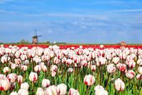 Prachtige tulpenvelden en windmolens in het voorjaar, Noord-Holland, Nederland