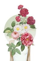 Samen vormen ze een vrolijk, ietwat onwaarschijnlijk portret van een vrouw. Of is het een portret van een mooi boeket met rozen?
