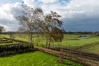 Spring trees and green agriculture fields at the Dutch countryside around Echt, The Netherlands