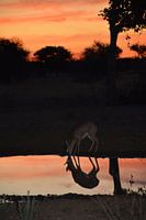 Springbok bij de zonsondergang  van Belinda Buskermolen