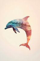 Elegante elegantie in zachte pastelkleuren, met een dolfijn wiens lichaam een dromerig landschap weerspiegelt. Deze kunstzinnige afbeelding vangt de vrijheid en schoonheid van de natuur en brengt een gevoel van rust over. Ideaal voor de woonkamer of een ontspannend hoekje op kantoor, waar het je gedachten zachtjes meevoert naar de verte.