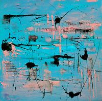 Koop dit abstracte kunstwerk Springende stippen van pol ledent op canvas, aluminium dibond, (ingelijste) fotoprint, behang en ArtFrame, op maat geprint in Fine-Art kwaliteit.