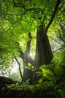 In de maand mei kleurt het bos weer groen. Zodra de bladeren zich ontvouwen zijn ze eerst nog bijna geel. De ultieme lente kleur en de tijd waarin alle vogels uit volle borst hun lied zingen. Precies op dat moment is deze foto gemaakt.