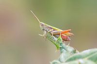 Sprinkhaan zittend op een distel met stekels