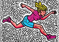 Details: abstract, vrouw, hardlopen, sport, dynamisch, vrolijk, energiek, roze, blauw, zwart