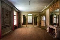 Een prachtige en sfeervolle kamer in een verlaten kasteel in Frankrijk. Weinig tot geen meubilair meer gevonden binnen, maar de prachtige contouren van het pand zijn duidelijk zichtbaar.
