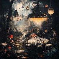 Voor wie is de gedekte tafel in het sprookjesbos versierd met lampionnen?