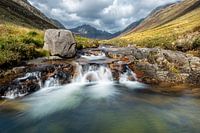 Dit beeld weerspiegelt de heerlijke ervaringen als je door de Schotse glens loopt. Hier de Glen Rosa in "klein Schotland", het eiland Arran, waar je alle soorten landschappen tegenkomt die Schotland te bieden heeft. Met de lange sluitertijd wordt een sprookjesachtige sfeer gecreëerd.