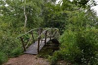 Klein houten bruggetje dat sprookjesachtig aandoet. Dit bruggetje is onderdeel van een wandelpad in een natuurgebied in Woerdense Verlaat