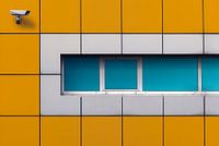 Architectuur in Antwerpen. Buitengevel met bewakingscamera.