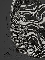 Dit abstracte werk is het linker deel van twee, maar kan ook prima alleen aan de muur hangen of bijvoorbeeld in twee verschillende ruimtes een deel ophangen. Zo hangt er iets anders maar hoort het toch bij elkaar. Dit is een digitaal ontworpen stuk, maar zonder het gebruik van AI.