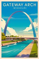 Een majestueuze hoogte breekt door de lucht en wordt weerspiegeld in het kalme water van een rivier. De zachte wolken en levendige kleuren geven het tafereel een dynamische charme. Deze indrukwekkende afbeelding van de Gateway Arch brengt levensvreugde in elke woonkamer en nodigt uit tot dromen over reizen en avontuur.