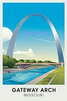 Een stralende hemel omarmt de iconische Gateway Arch, die majestueus boven het water uittorent en een gevoel van vrijheid en ontdekking uitstraalt. De zachte kleuren en strakke lijnen nodigen uit tot dromen en geven elke kamer een inspirerend tintje. Perfect voor een woonkamer die uitnodigt om te ontspannen en na te denken.