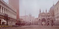 De beroemde bezienswaardigheden pieken door de vroege ochtendmist...
