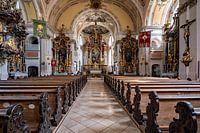 Rond 750 bekeerden Ierse en Schotse monniken het Beierse Oberland tot het christendom. Aangenomen wordt dat er in die tijd ook een houten kerk in Garmisch werd gebouwd. De beschermheilige is St. Martin, de belangrijkste heilige in het Frankische Rijk. In de romaanse periode moest de kerk plaatsmaken voor een nieuw stenen gebouw. In de 18e eeuw was de kerk te klein geworden voor de gemeente. Daarom werd besloten om een nieuwe kerk te bouwen ten zuiden van de Loisach aan de rand van de Loisachgries aan de Nikolausanger. Nadat de eerste steen op 15 augustus 1730 was gelegd door prelaat Patritius, de proost van Rottenbuch, werd de nieuwe parochiekerk in de jaren 1730-34 gebouwd door de Wessobrunnse bouwmeester Joseph Schmuzer. De opzichtige hallenkerk, gebouwd op de plaats van een St. Nicolaaskapel, is in typische Zuid-Duitse barokstijl. Het dakgebint werd op 22 oktober 1732 geplaatst. Een jaar later werd de steiger afgebroken. De plafondschilderingen werden gemaakt door Matthäus Günther en de fresco's door Franz Zwinck.[1] De nieuwe parochiekerk werd op 23 september ingewijd. Net als bij de oude kerk kozen de bouwers Sint-Maarten als patroonheilige. Van de oorspronkelijk geplande twee kerktorens werd er maar één gebouwd, omdat de prins-bisschop van Freising en vorst over Garmisch en het graafschap Werden-fels maar één toren goedkeurde. De totale bouwkosten bedroegen 12.000 gulden. Daarnaast verleende de bevolking op grote schaal vrijwillige diensten in de vorm van handenarbeid. De stenen voor het nieuwe gebouw kwamen uit het kasteel Werdenfels, dat in 1730 werd afgebroken. Sinds 2007 is de kerk uitgebreid gerenoveerd. Na de dak- en gevelrenovatie werd in 2010 ook het interieur met de plafond- en muurfresco's en de technische uitrusting gerenoveerd. Daarbij ontdekten de restaurateurs enorme schade aan de houten vloer onder de kerkbanken. De renovatiemaatregelen werden voltooid in
