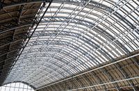 London England United Kingdom St Pancras railway Station. Impressive roof of the train shed